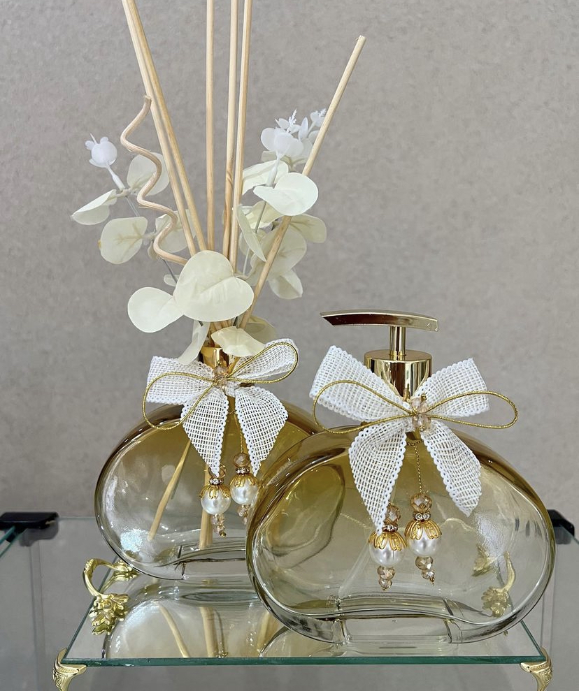 Kit Lavabo Jolie Luxo com bandeja dourado e eucalipto
